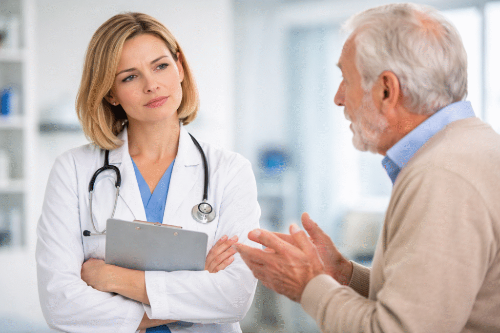 Kūno kalba taip pat turi įtakos gydymo rezultatų suvokimui. Tyrimai rodo, kad pacientai dažniau laikosi rekomendacijų ir geriau vertina gydymo procesą, kai gydytojas rodo aiškų dėmesį, orientuoja kūną į pacientą, reguliariai linkteli galva, demonstruoja ramų balso toną ir atvirą laikyseną. Šie veiksniai sukuria saugią komunikacinę erdvę, kurioje pacientas drąsiau užduoda klausimus ir tiksliau nusako simptomus.